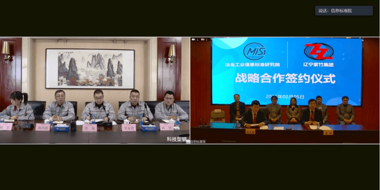 在疫情防控常態(tài)化背景下,冶金工業(yè)信息標(biāo)準(zhǔn)院(以下簡稱:信息標(biāo)準(zhǔn)院)與遼寧紫竹集團(tuán)有限公司(以下簡稱:紫竹集團(tuán))嚴(yán)格按照國家疫情防控的有關(guān)要求,于2月5日通過視頻會(huì)議的方式舉行戰(zhàn)略合作協(xié)議簽約儀式。此次合作旨在為雙方充分利用和發(fā)揮各自資源及優(yōu)勢搭建平臺,開展全方位、深層次的戰(zhàn)略合作,不斷提升雙方綜合能力和市場競爭力,為行業(yè)高質(zhì)量發(fā)展提供強(qiáng)大助力。